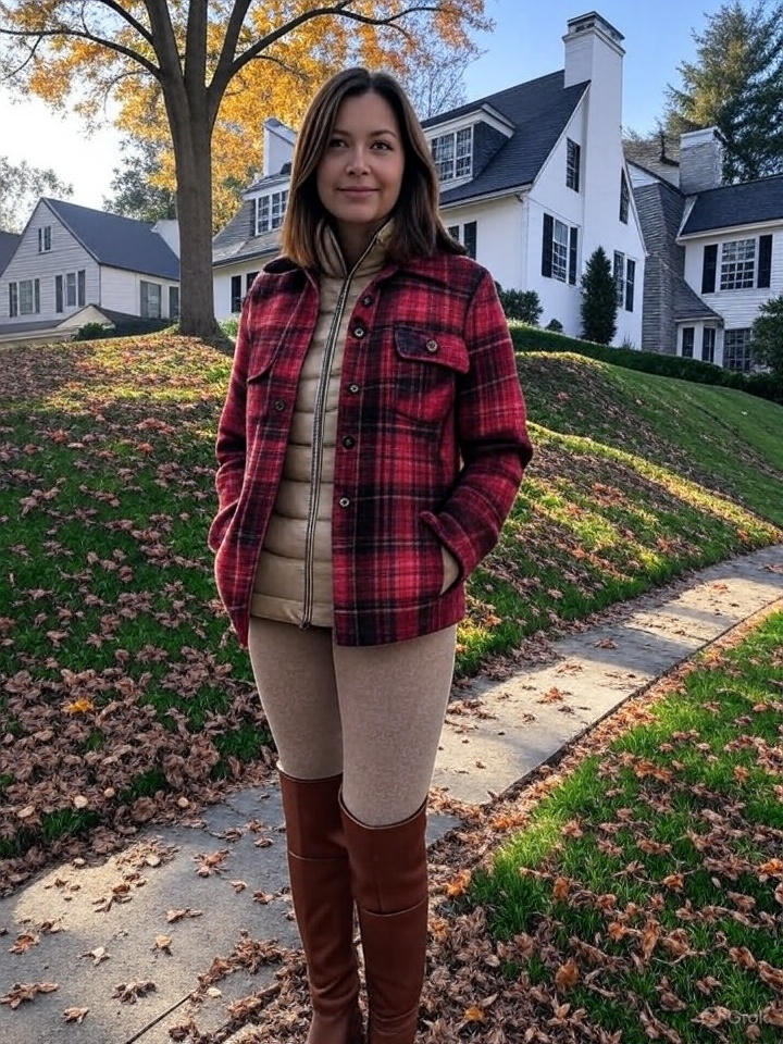 - Shacket (wool-blend): medium weight for 50–60°F; size up for sweaters.