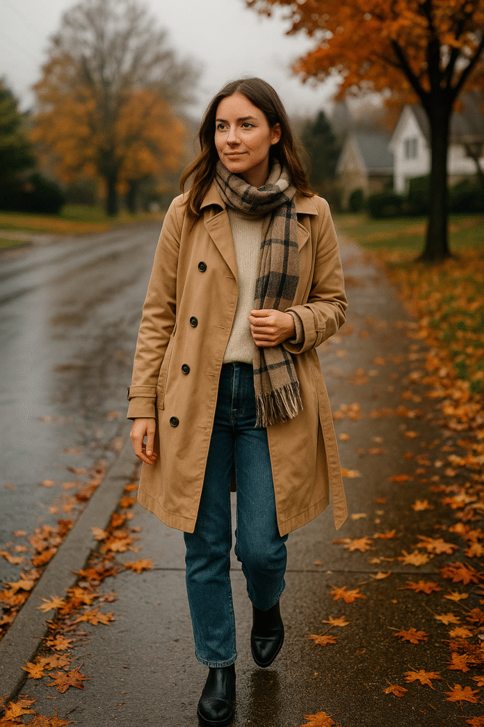 - If you run cold, add a thin down vest under the trench.