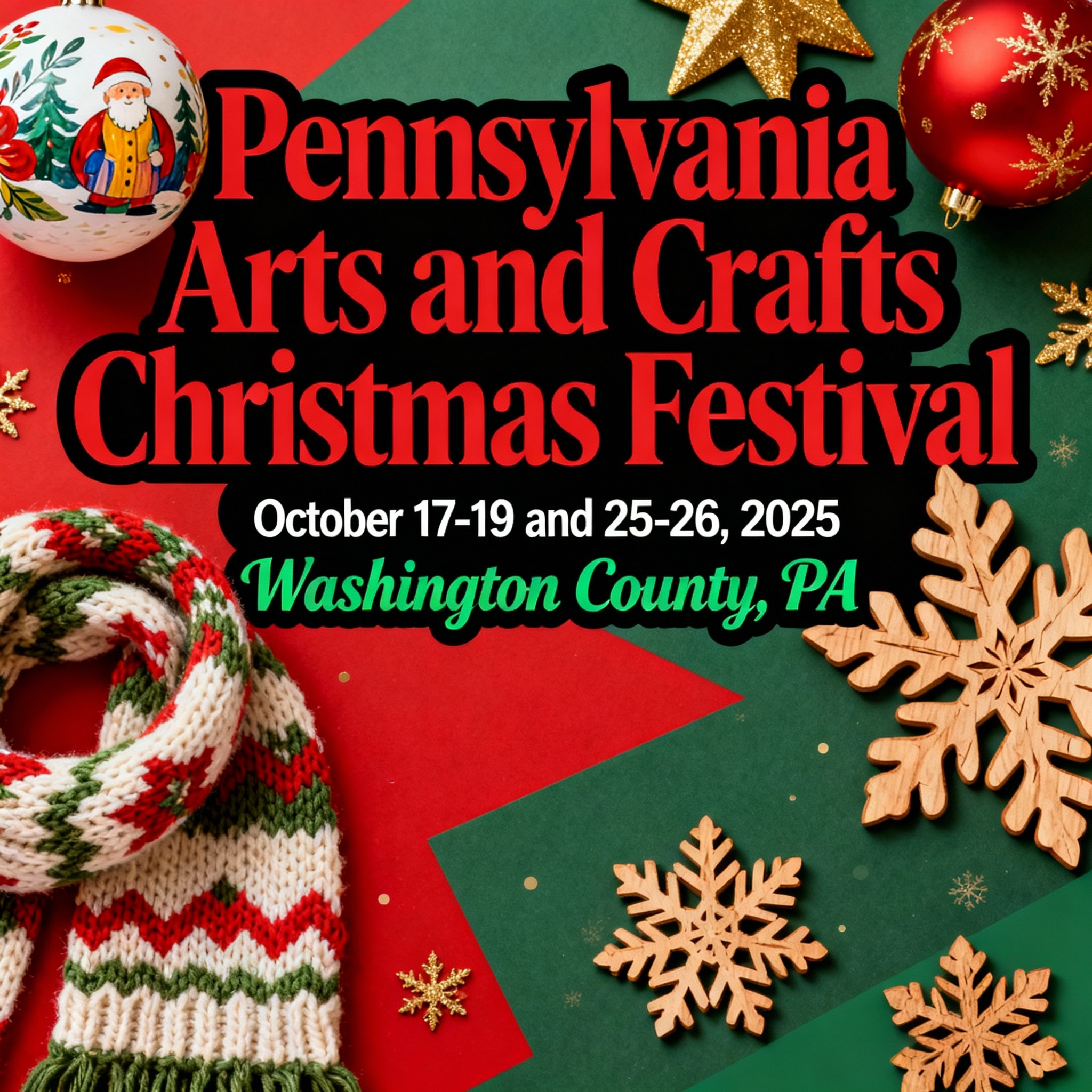 Mark the calendar for October 17-19 and 25-26, 2025, and join the celebration of creativity and holiday magic at the Pennsylvania Arts and Crafts Christmas Festival in Washington County